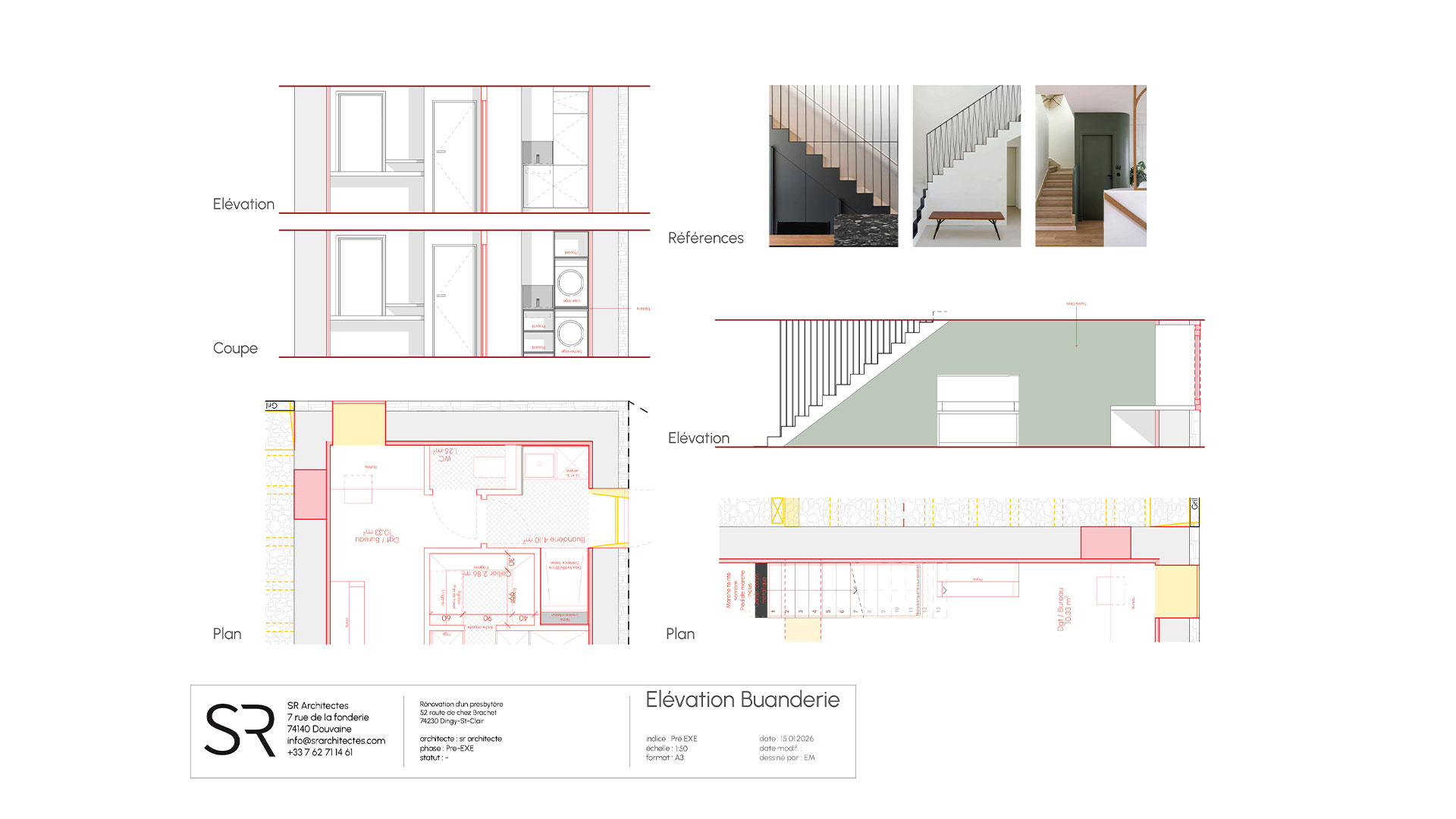 La base de l’escalier en pierre existant va être conservé et cet escalier permettra de desservir l’espace de bureau partagé longue durée, nouveau de circulation et convivialité du projet. Permis de construire en cours d’instruction.